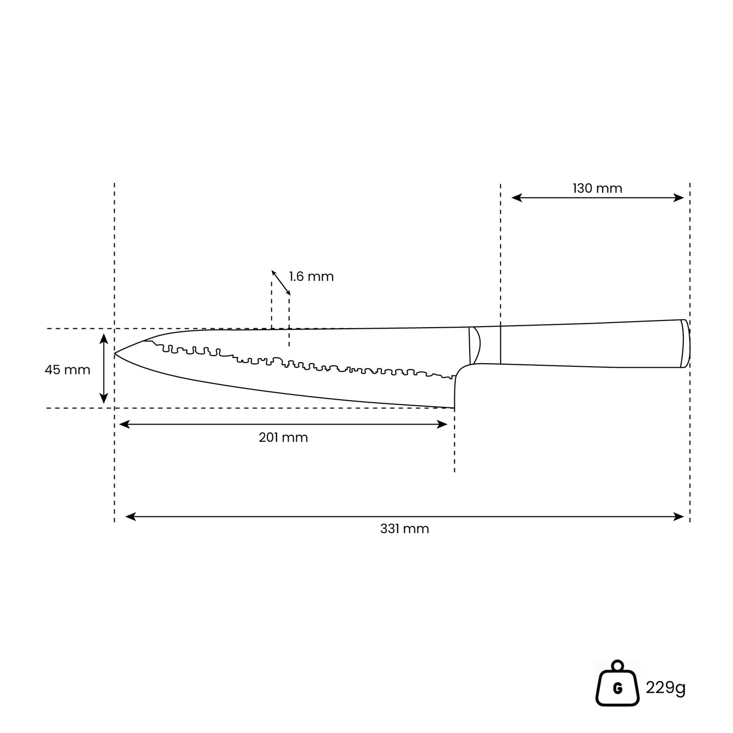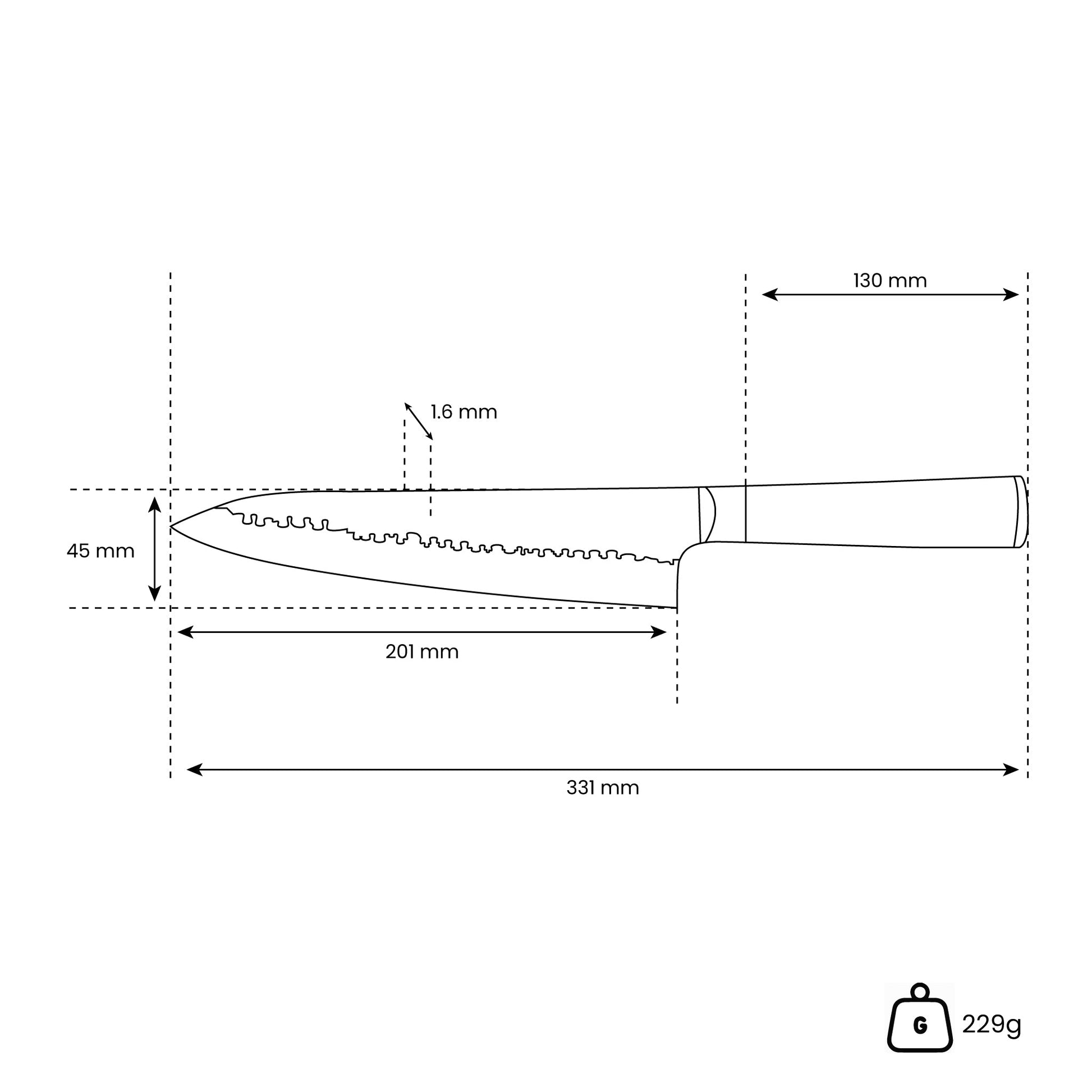 Acier Inox Martelé Noir - Couteau de Chef 20 cm