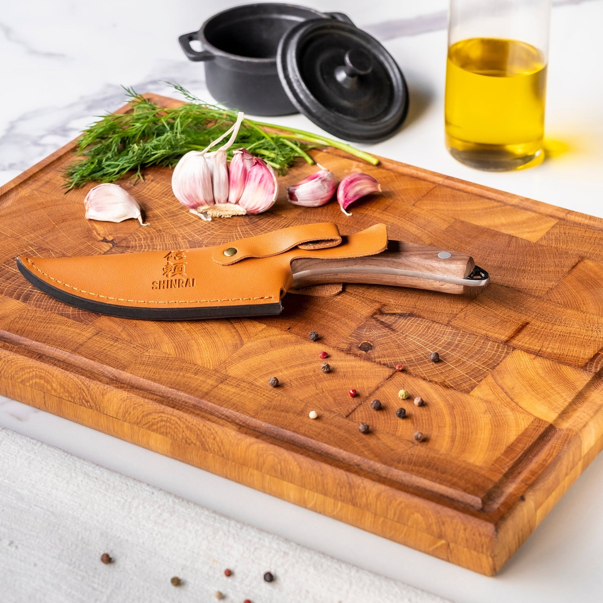 Cette édition de la série Hammered Stainless Steel Gladiator a non seulement son apparence, mais aussi ses excellentes spécifications. La lame en acier martelée à la main se prolonge dans un magnifique manche en bois massif. La lame est martelée à la main à la japonaise. Cette technique s'appelle tsuchime. Cela garantit non seulement un tranchant élevé et une belle apparence, mais empêche également vos produits coupés de coller à la lame.