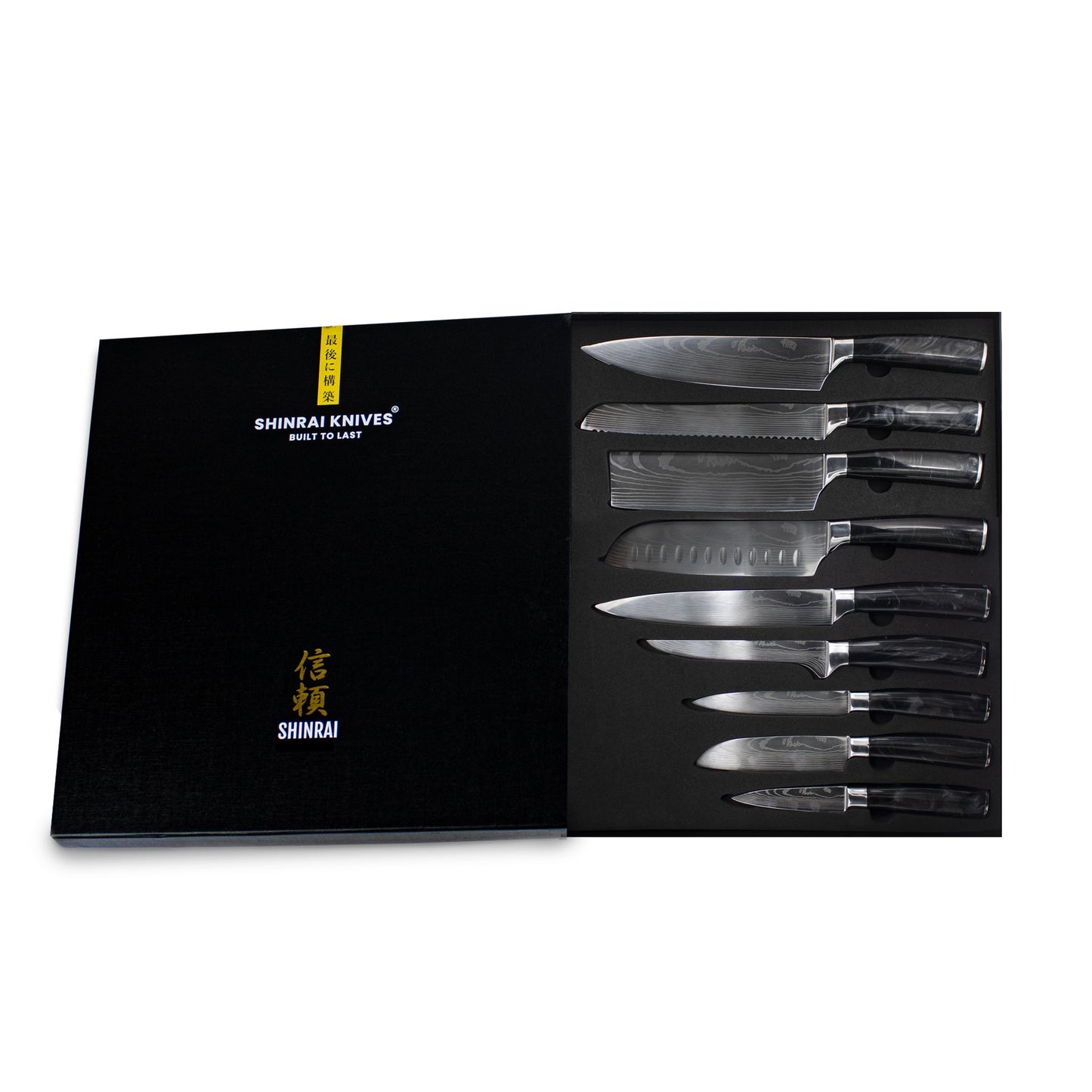 Les couteaux de Shinrai Japon sont uniques car la plupart d'entre eux sont fabriqués à la main. Forgé à partir d'acier allemand à haute teneur en carbone, ce qui rend les couteaux durs et très tranchants. Un ensemble de couteaux magnifique et durable qui ne peut manquer dans votre cuisine.