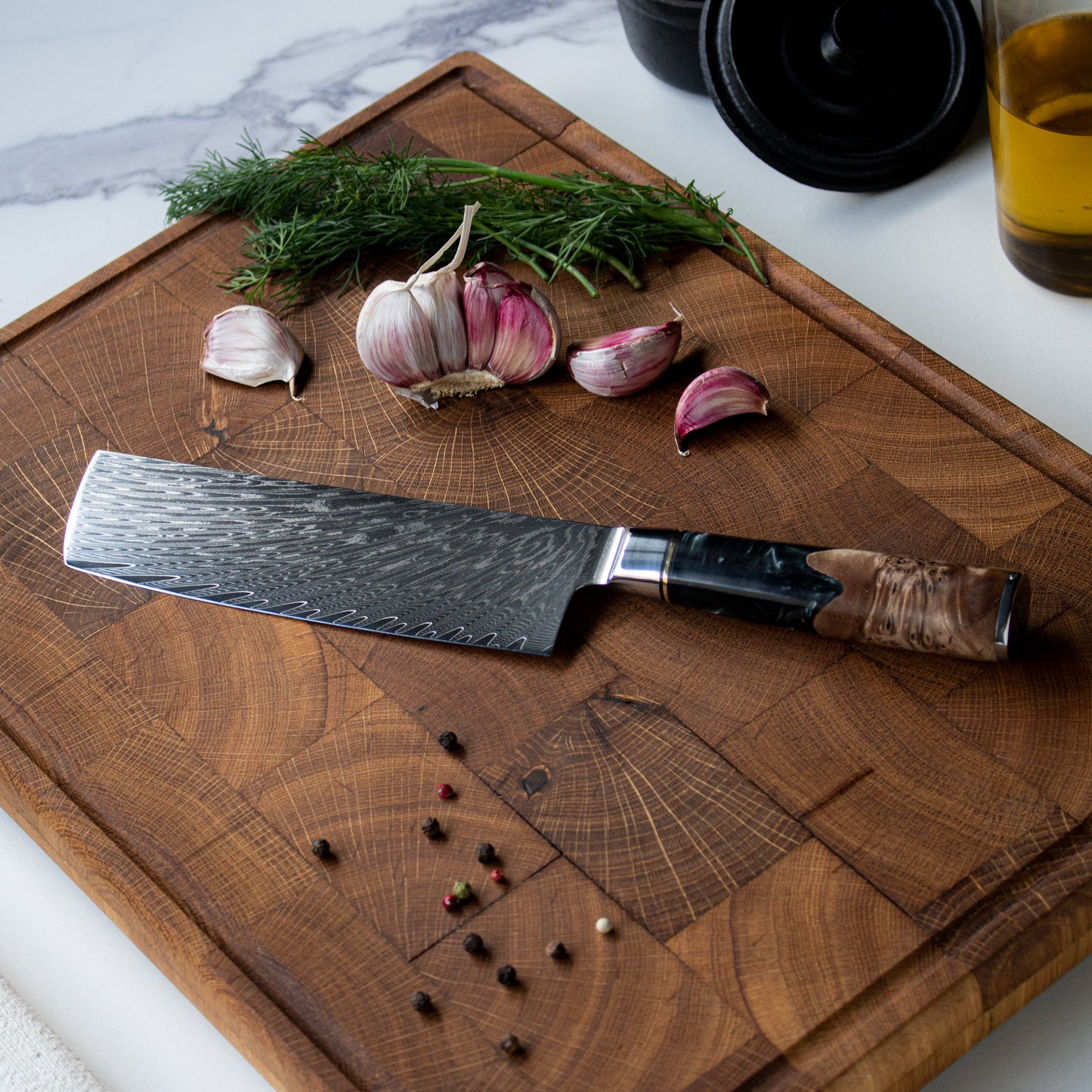 The Epoxy Onyx Series combines traditional forging techniques with a modern aesthetic. Each knife is handcrafted and features a unique handle crafted from black onyx epoxy combined with oak . The result is a series of knives that not only excel in functionality but also make an artistic statement in your kitchen.
