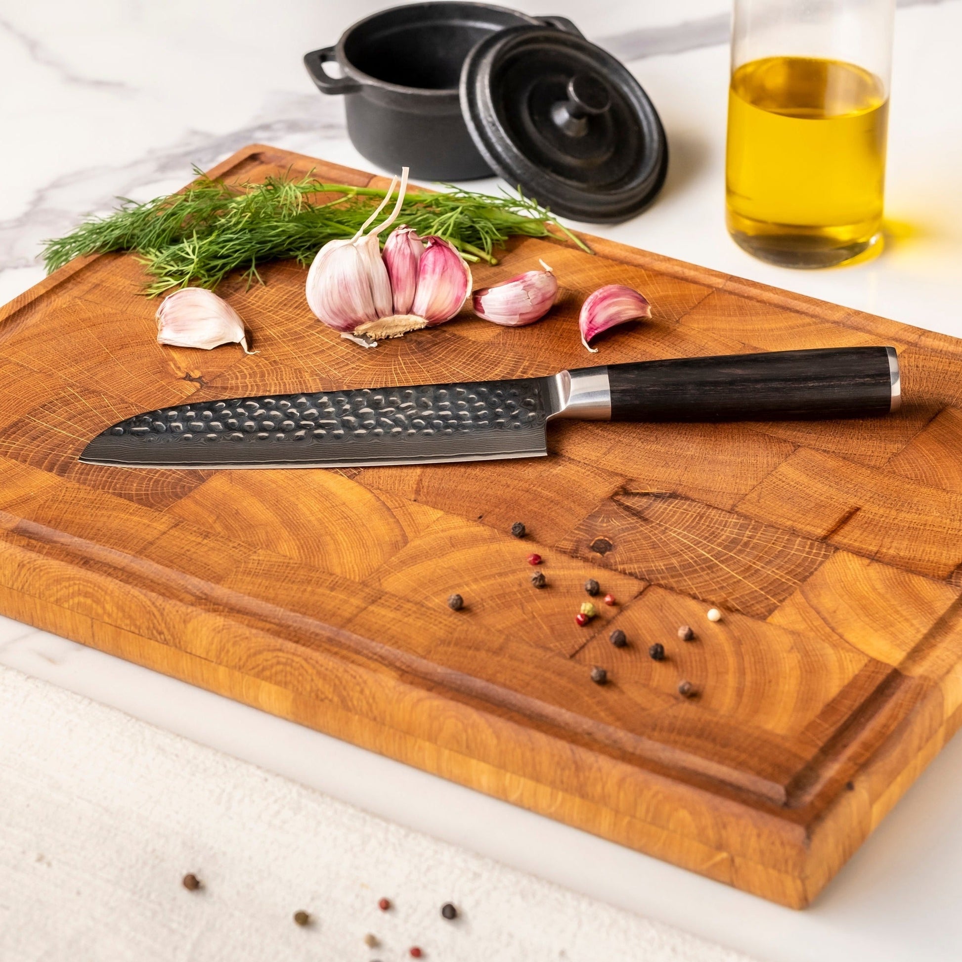 Preferably use a wooden cutting board to protect the edge of your knives and extend their lifespan.