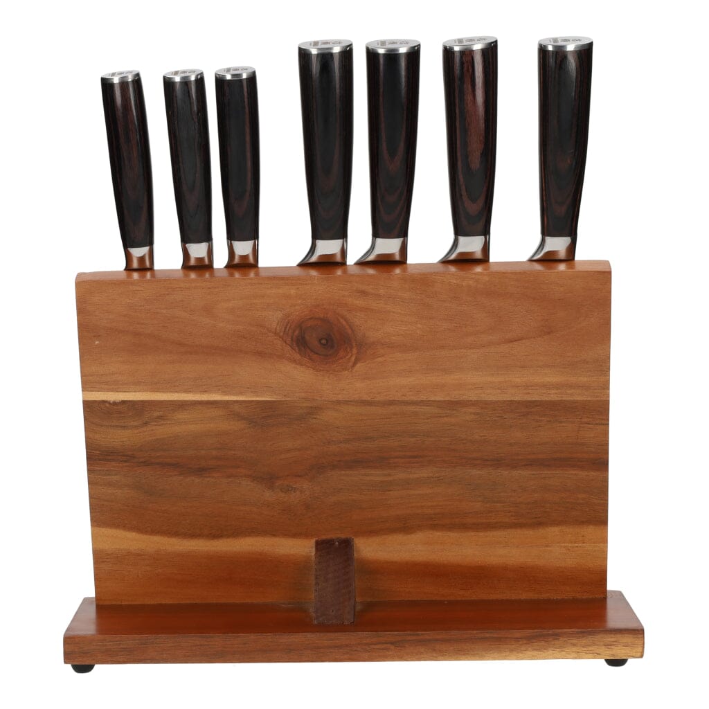 Store your knives safely in the included acacia wood knife block to prevent damage and always have them within reach.