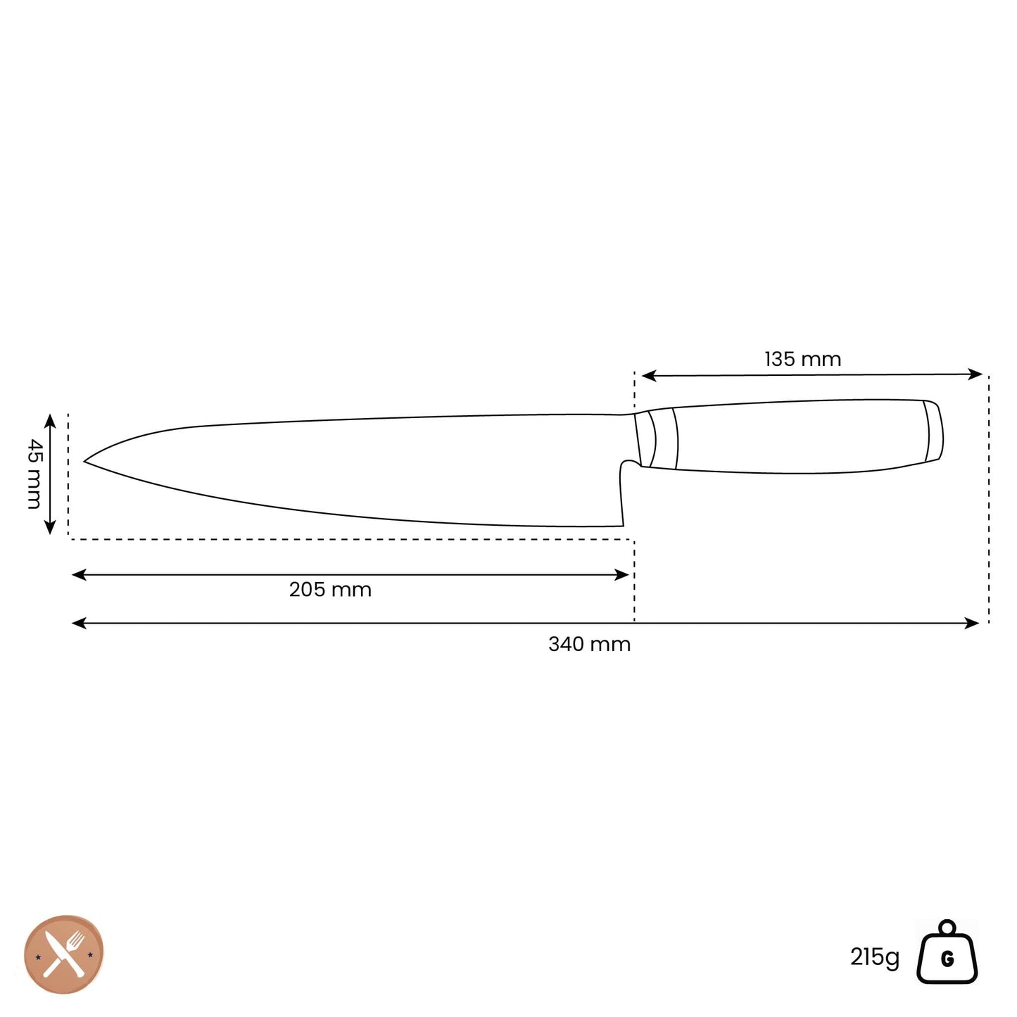 In Japan, this knife is exclusively for the chef and denotes the skill and status of the master chef. With this kiritsuke chef's knife you own a great-looking product of exceptional quality and appearance, while the materials used ensure that you can enjoy a sharp knife for an exceptionally long time.